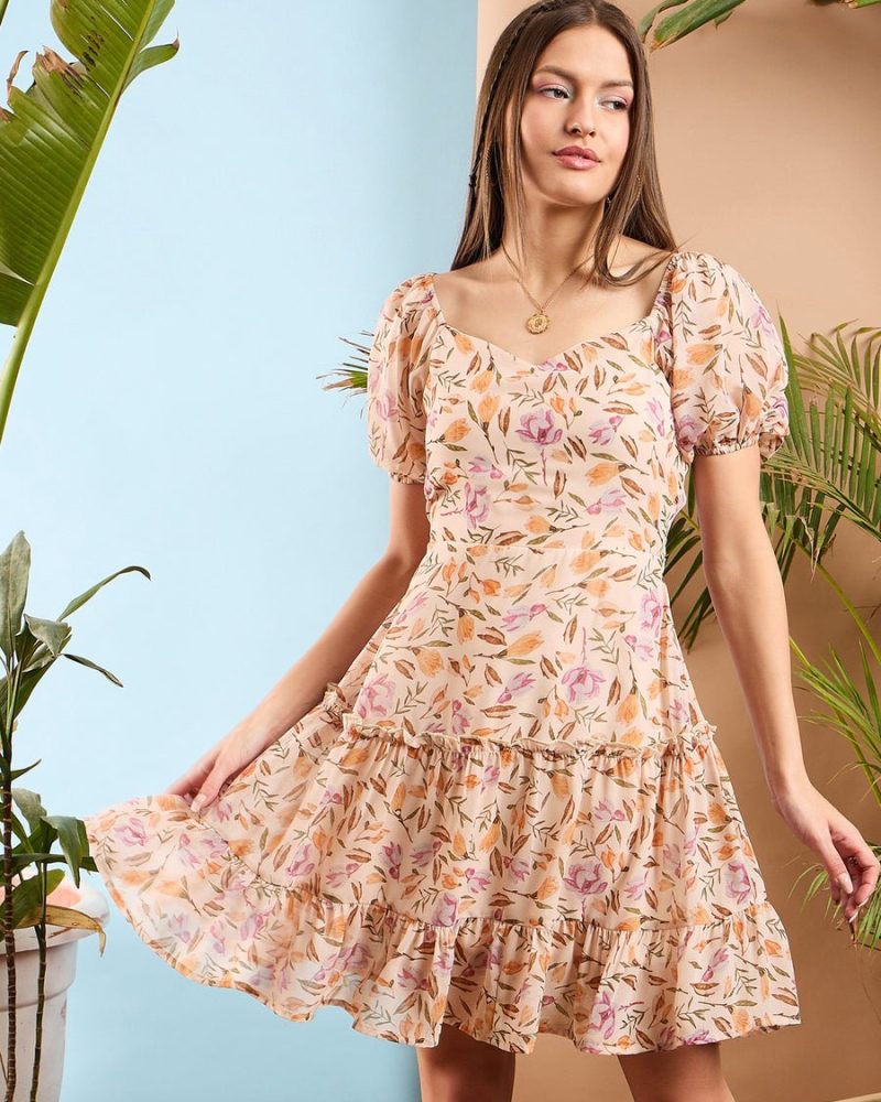 Beige solid t-shirt, has a round neck and short sleeves secured with slip-on closure