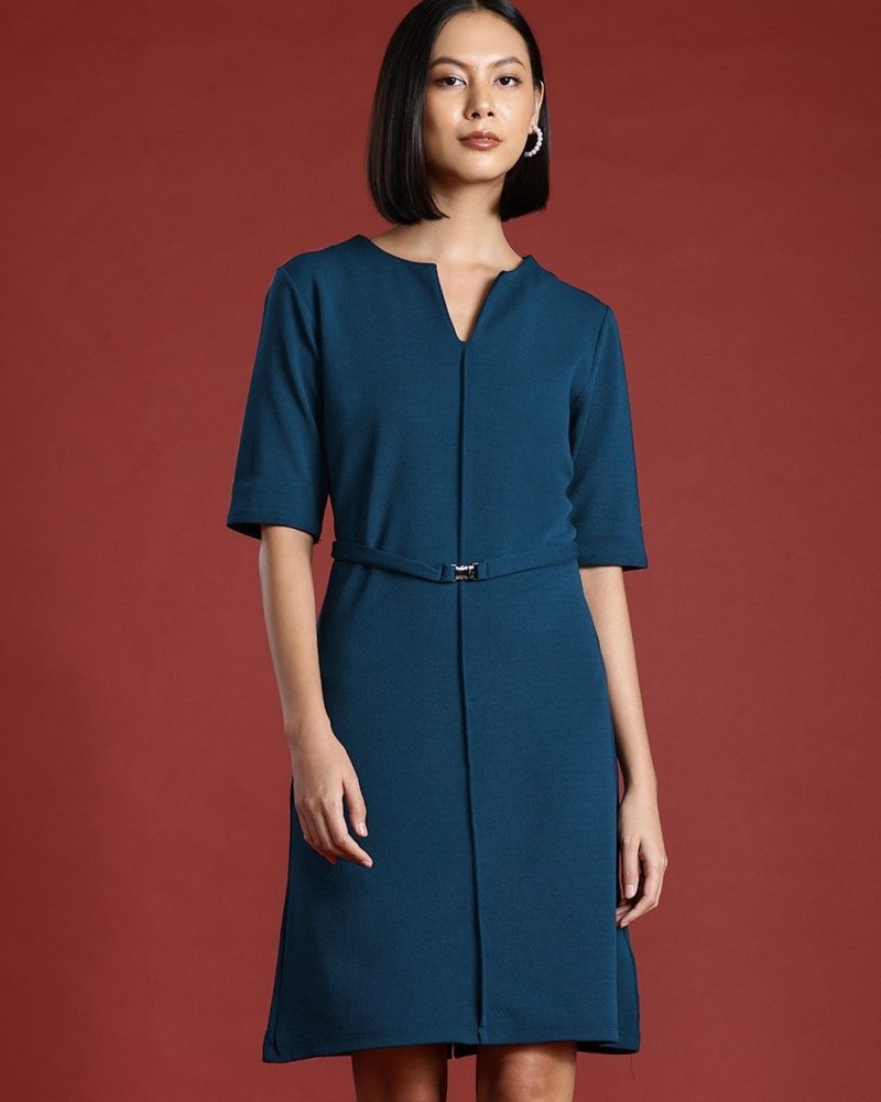Business Formals: Solid Burgundy short extended sleeves Dress